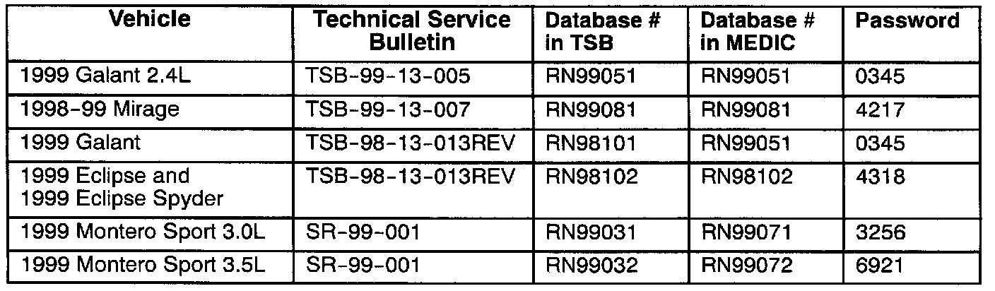 This database information is subject to change. Refer to the MEDIC screen to confirm current database numbers and for new reprogramming issues. DO NOT USE OLD DATABASE INFORMATION. USE ONLY THE LATEST VERSION DATABASE AS POSTED IN MEDIC AND ON THE MEDIC WEB PAGE IN DIAMOND DEALER LINK.