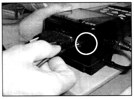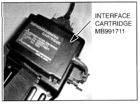 2. Install the MMC ECU Reprogramming Interface Cartridge (p/n MB991711) on the MUT-II as shown.
