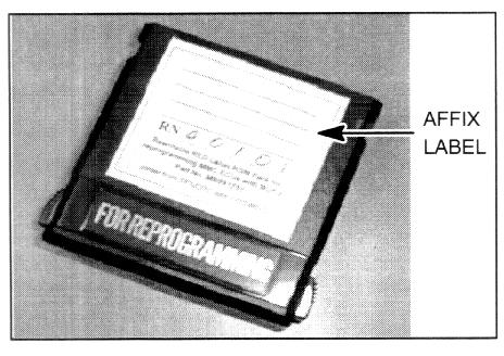 16. A small supply of ROM pack labels have been provided with this bulletin. Write the new database number on a label, then affix it to the ROM pack as shown.