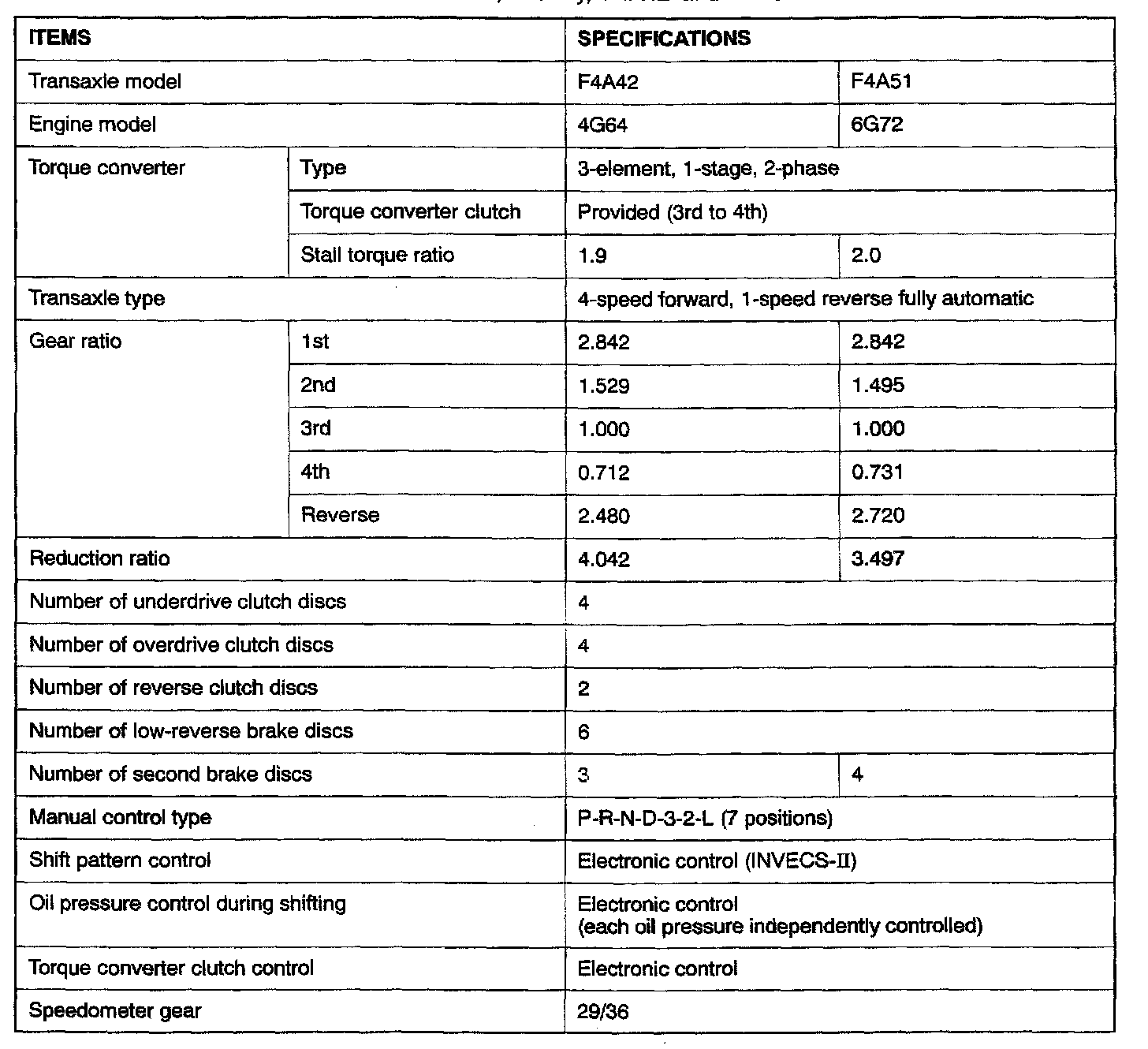 F4A42/F4A51 4-spd A/T, Gear Ratios: