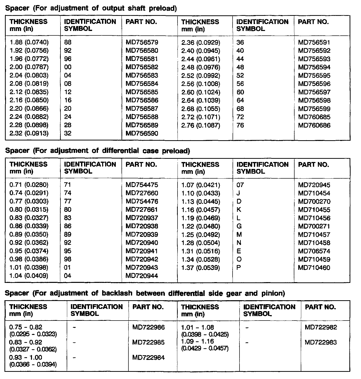 F4A42/F4A51 4-spd A/T, Output Shaft/Differential Preload & Backlash: