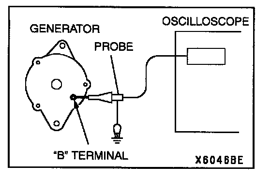 NOTE: Identification of abnormal wave forms is easier when there is a large output current (regulator is not operating). wave forms can be observed when the headlights are illuminated.)