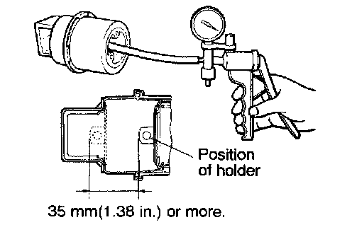 1. Remove the actuator.2. Apply negative pressure to the actuator with the vacuum pump and check that the holder moves more than 35 mm (1.38 in.). In addition, check that there is no change in the position of the holder when negative pressure is maintained in that condition.