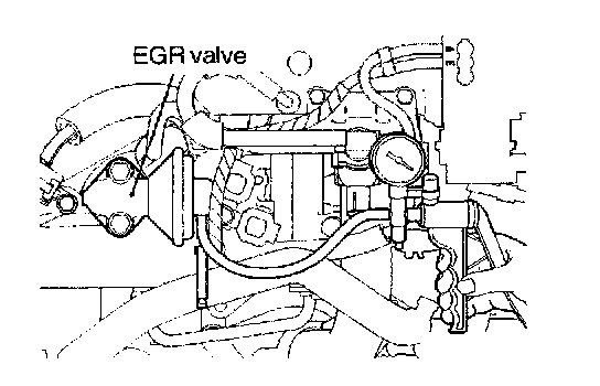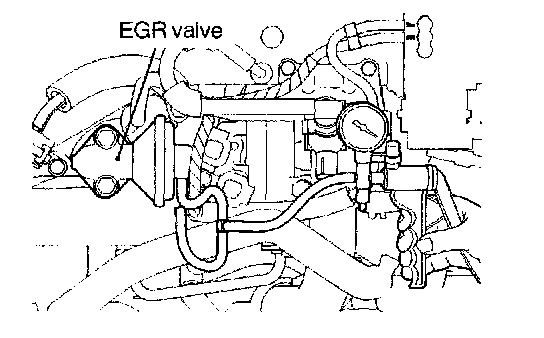EGR SYSTEM CHECK1. Disconnect the green striped vacuum hose from the EGR valve, and using a three-way terminal, connect a hand vacuum pump as shown.