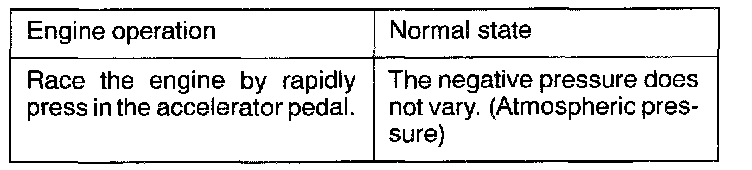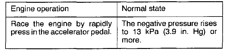 4. When a negative pressure of 31 kPa (9.1 in.Hg) is applied during idling, check that the engine stops or idles unstably.