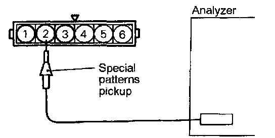 Connect the analyzer special patterns pickup to ECM terminals (10), (11) and (23) for the ignition power transistor.