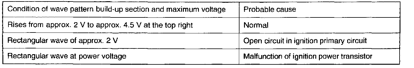 Point: Condition of wave pattern build-up and maximum voltage (Refer to abnormal wave pattern examples 1 and 2.)