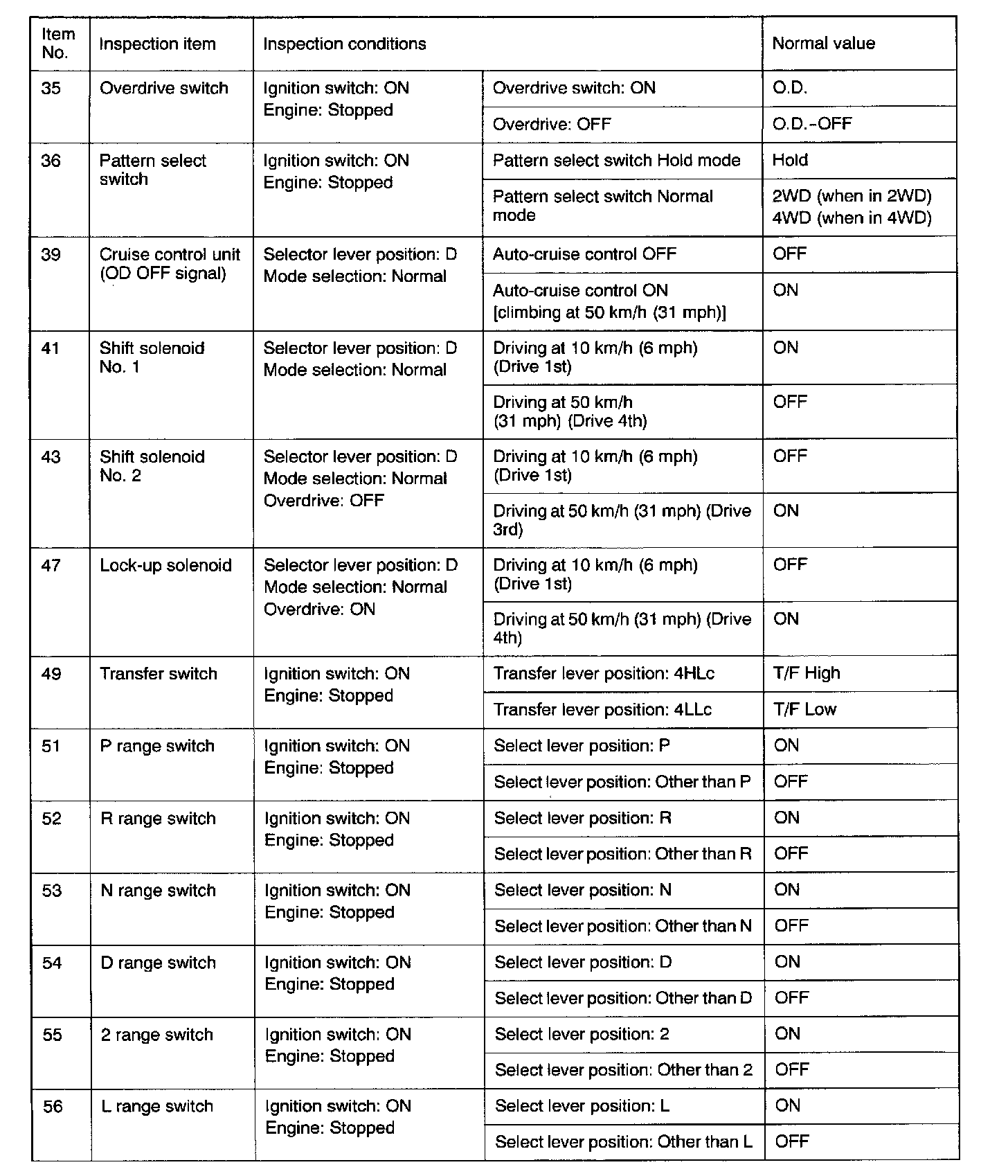 SERVICE DATA REFERENCE TABLE