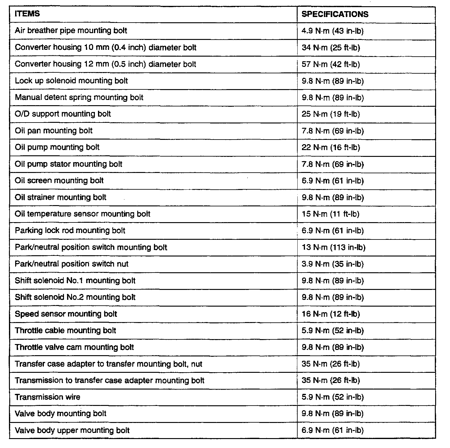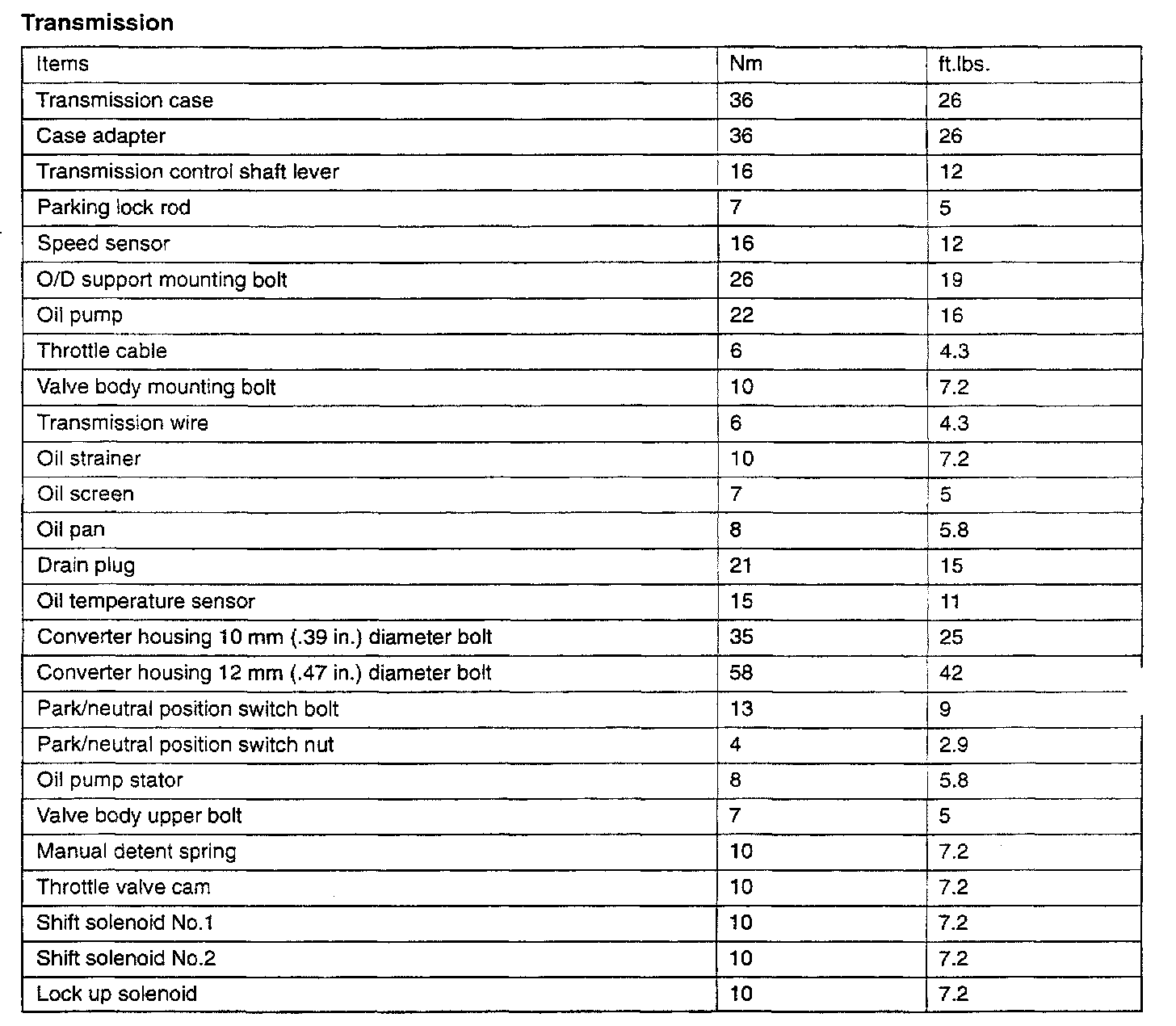 R4AW3/V4AW3 4-spd A/T, Transmission Torque: