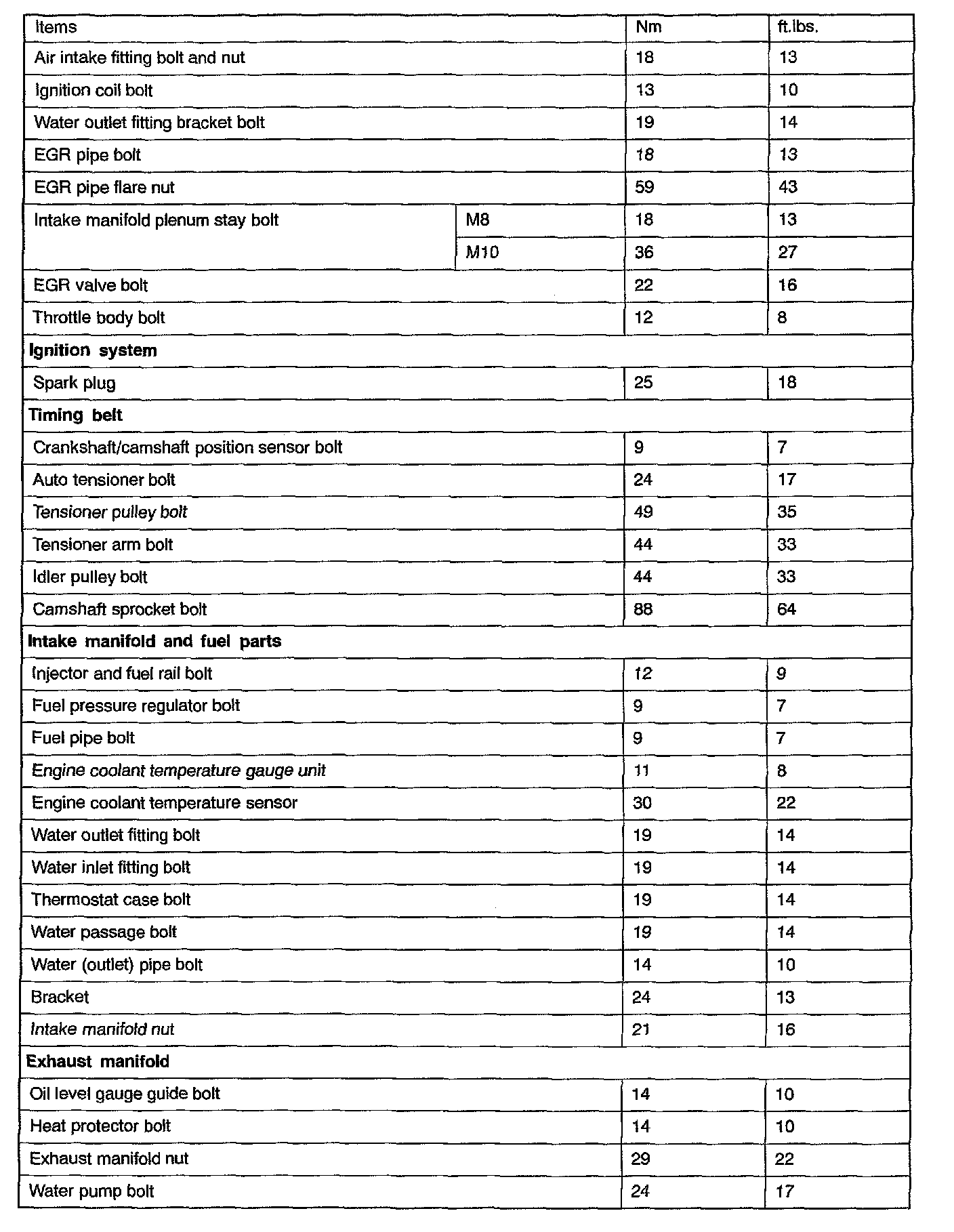 Torque Specifications