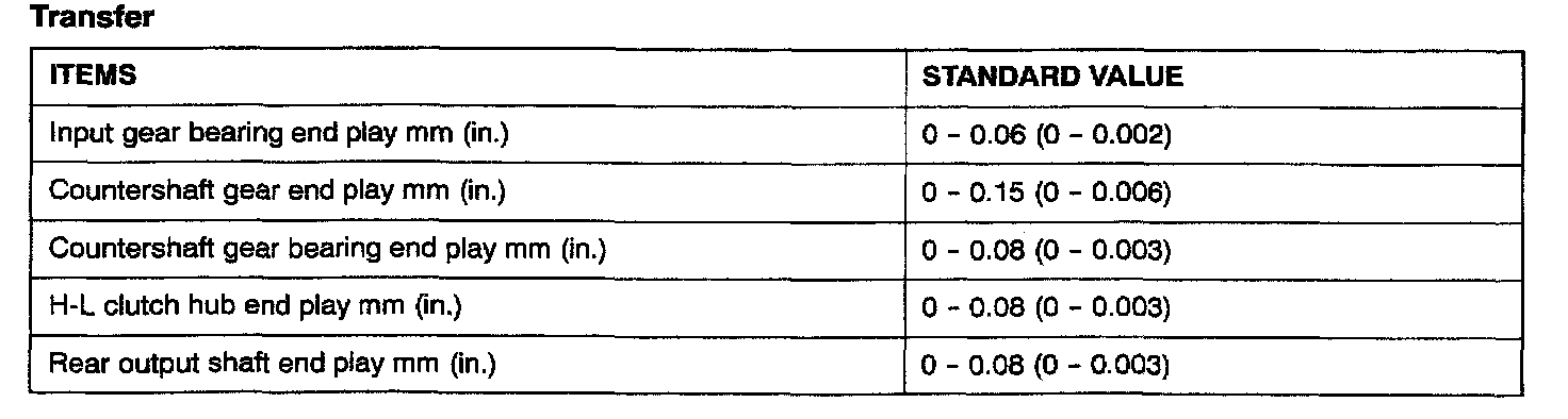 V4AW3 4-spd A/T, Transfer Standard Values & Limits: