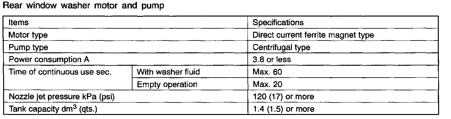 Rear Window Washer Motor and Pump: