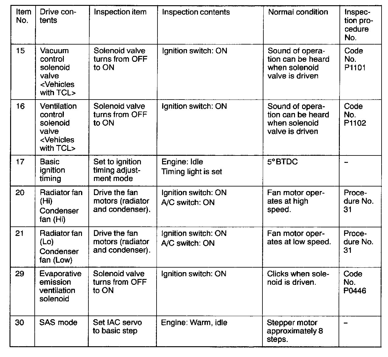 Actuator Test Reference Table Part 2: