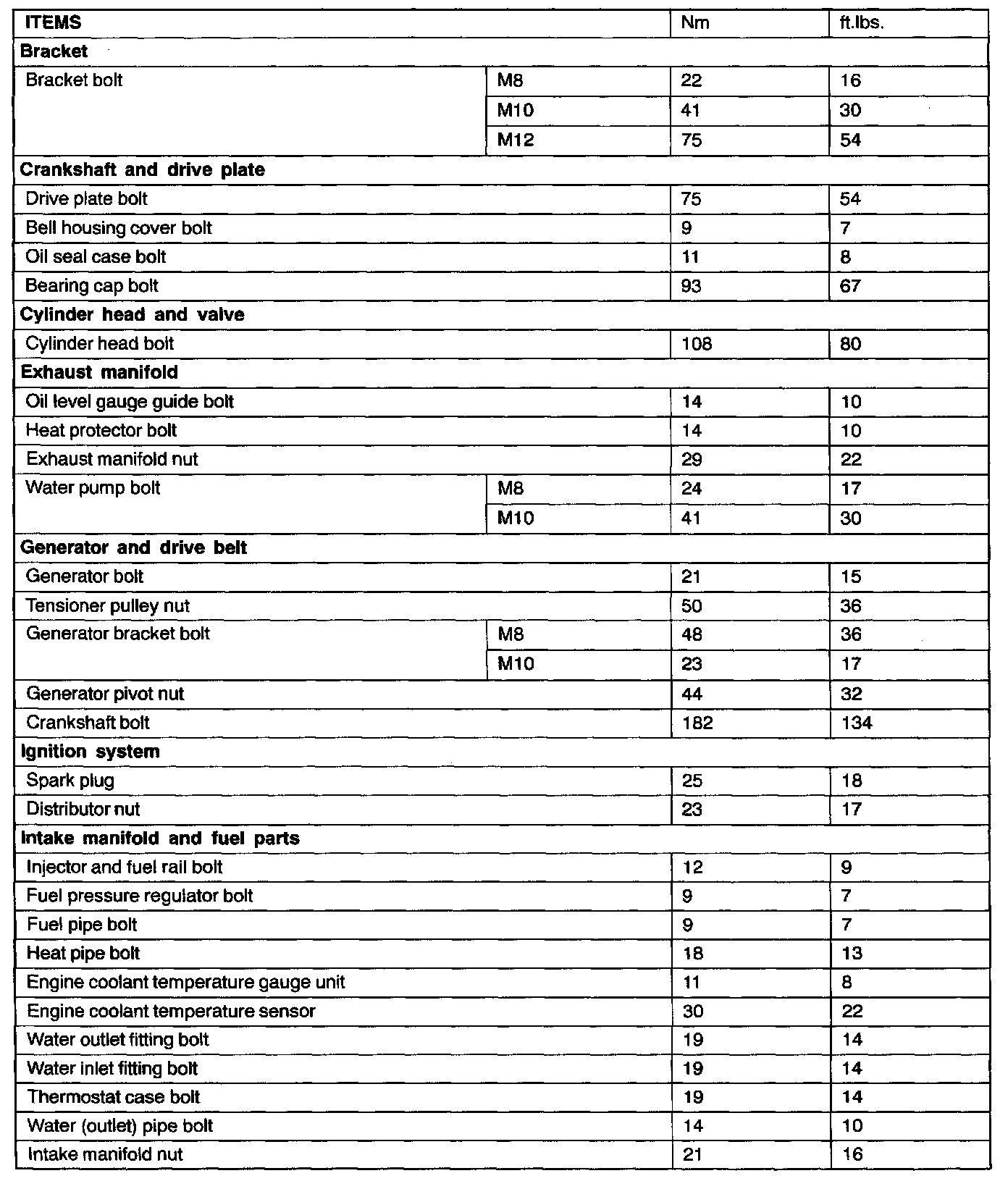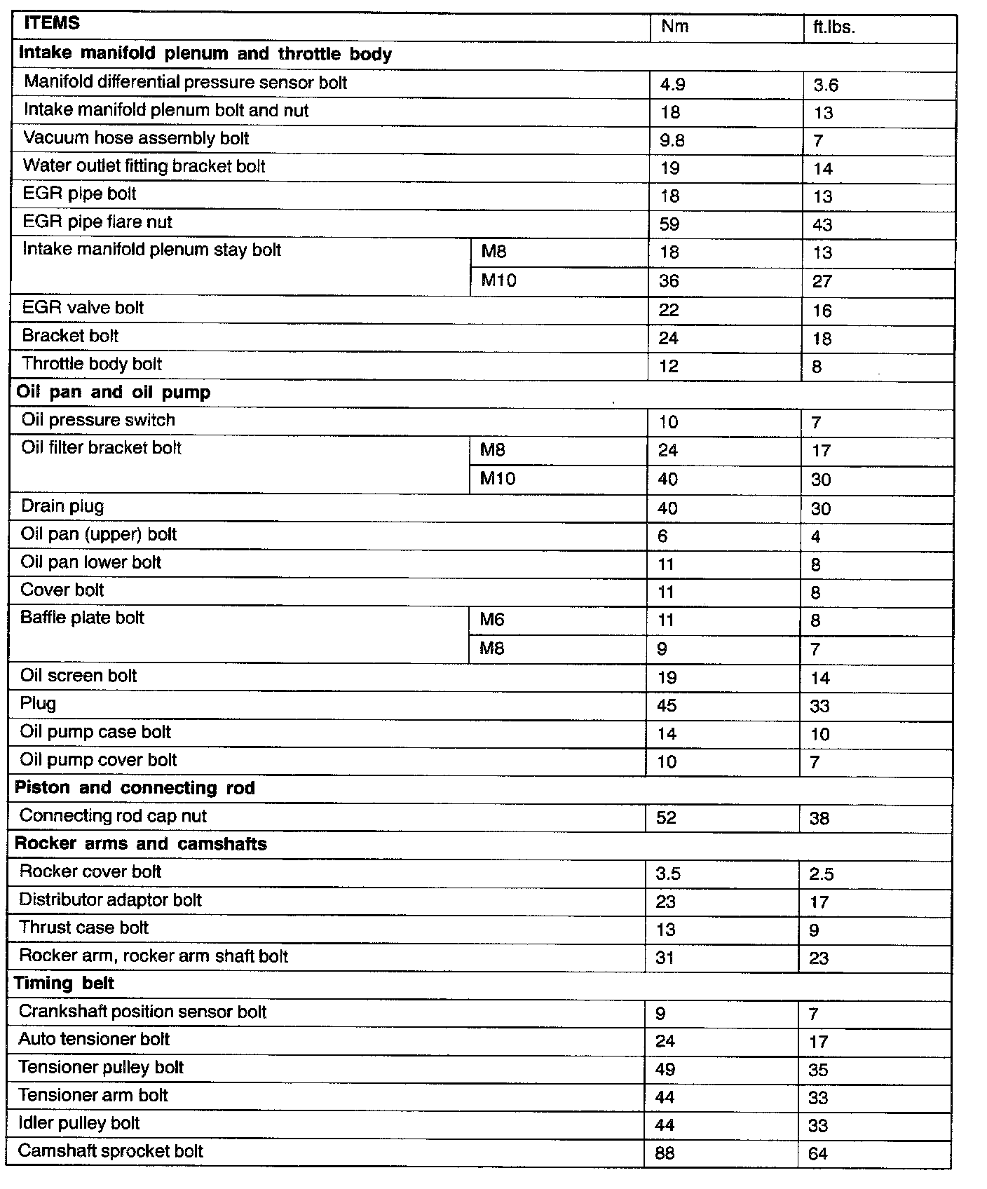 Torque Specifications