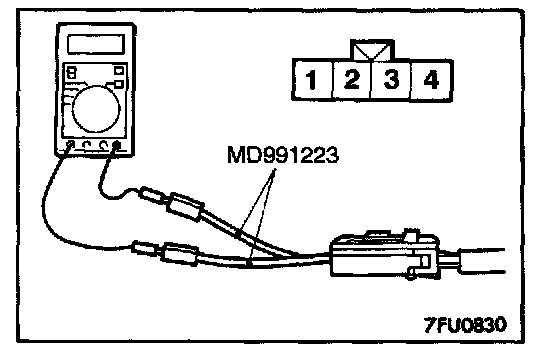 2. Make sure that there is continuity [7 - 40 Ohms at 20 °C (68 °F)] between terminal 3 and terminal 4 on the heated oxygen sensor connector.