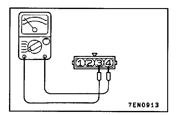 An analog-type ohmmeter should be used. Check that the resistance between terminals 3 and 4 is at the standard value.