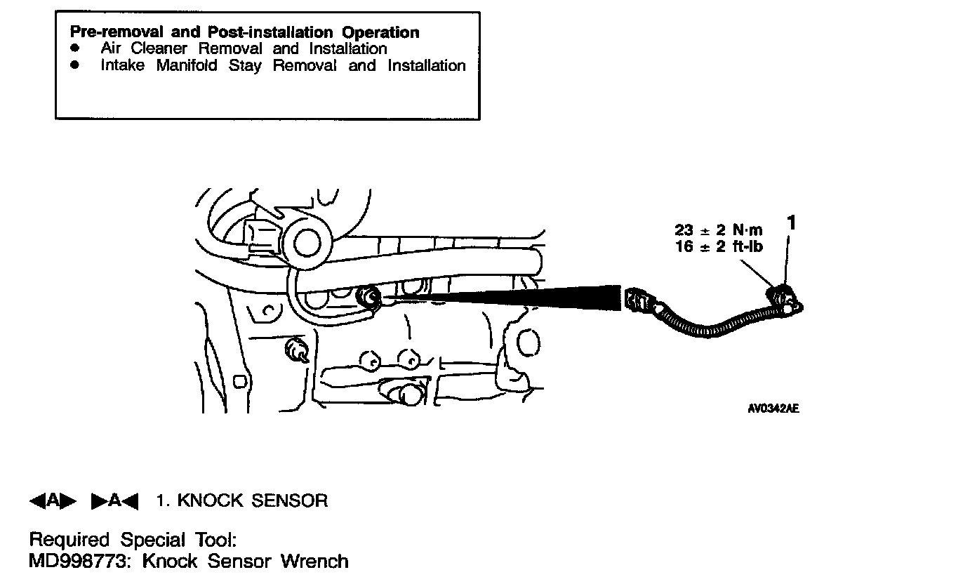Use special tool MD998773 to remove the knock sensor.