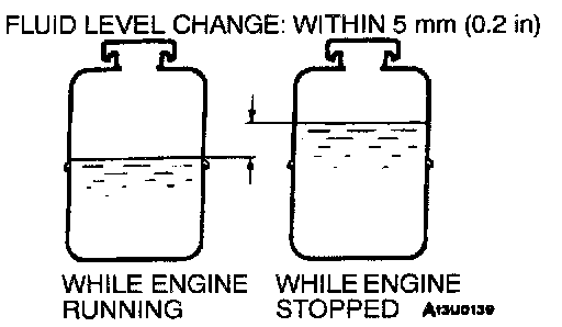 3. Check the fluid in the oil reservoir for foaming or milkiness. Check the difference of the fluid level when the engine is stopped, and while it is running. If the change of the fluid level is 5 mm (0.2 inch) or more, air bleeding should be done.