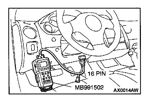CAUTION: To prevent damage to scan tool MB991502, always turn the ignition switch to "LOCK" (OFF) position before connecting or disconnecting scan tool MB991502.