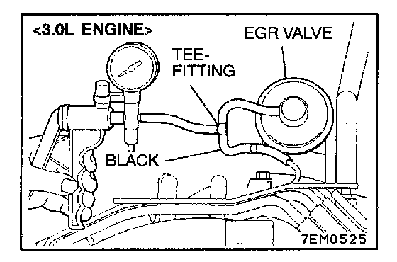 1. Disconnect the vacuum hose (black) from the EGR valve, and then connect a hand vacuum pump via the Tee-fitting.