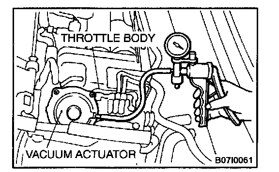 2. Check that the throttle lever operates when applying vacuum, and the vacuum is maintained.