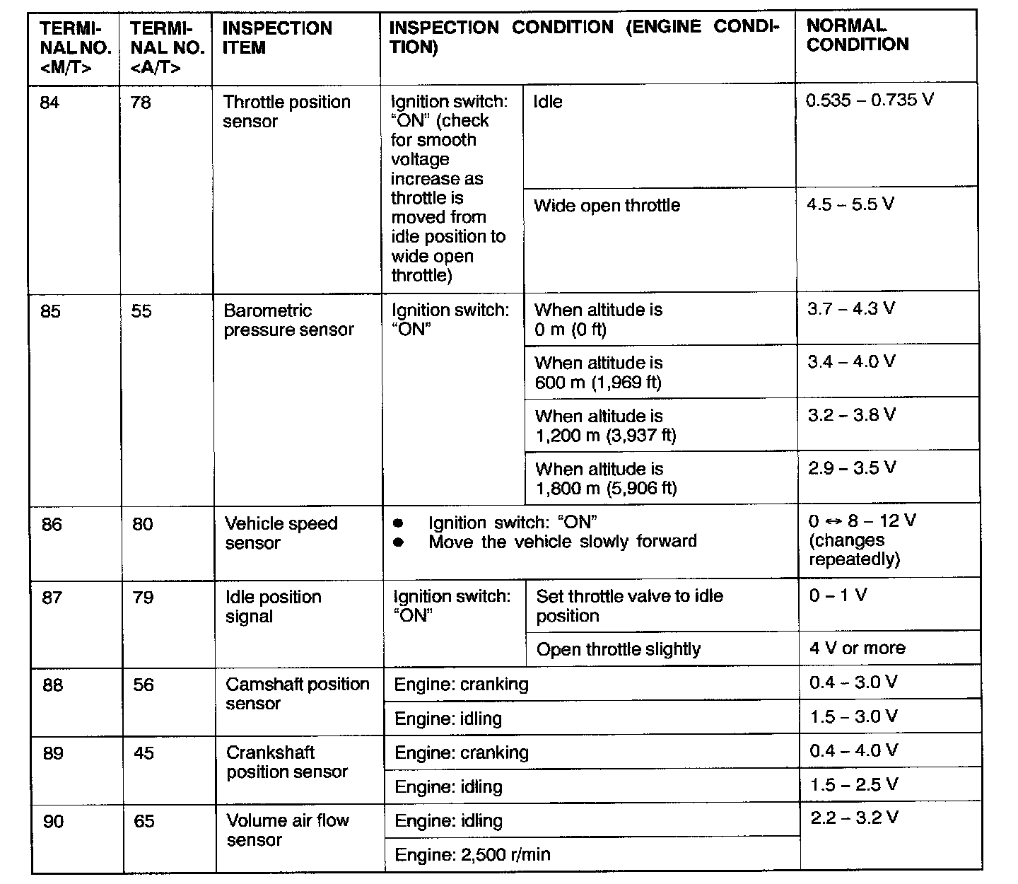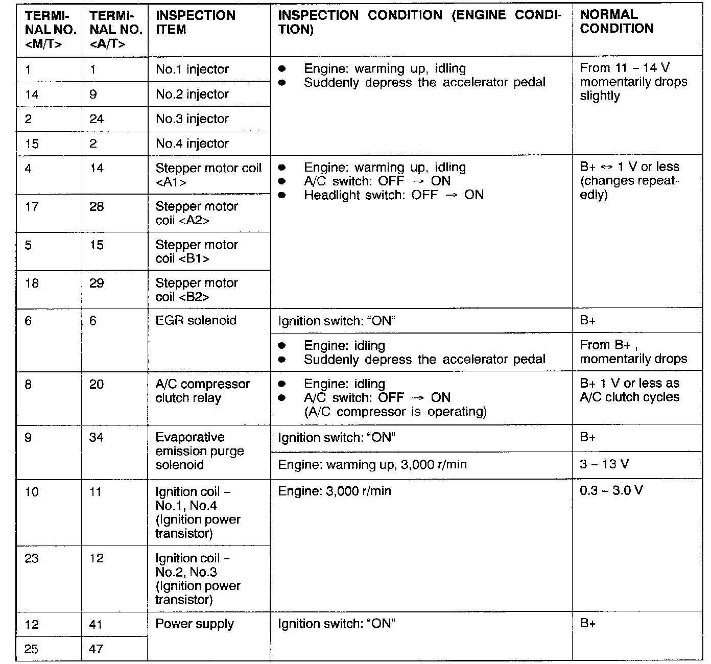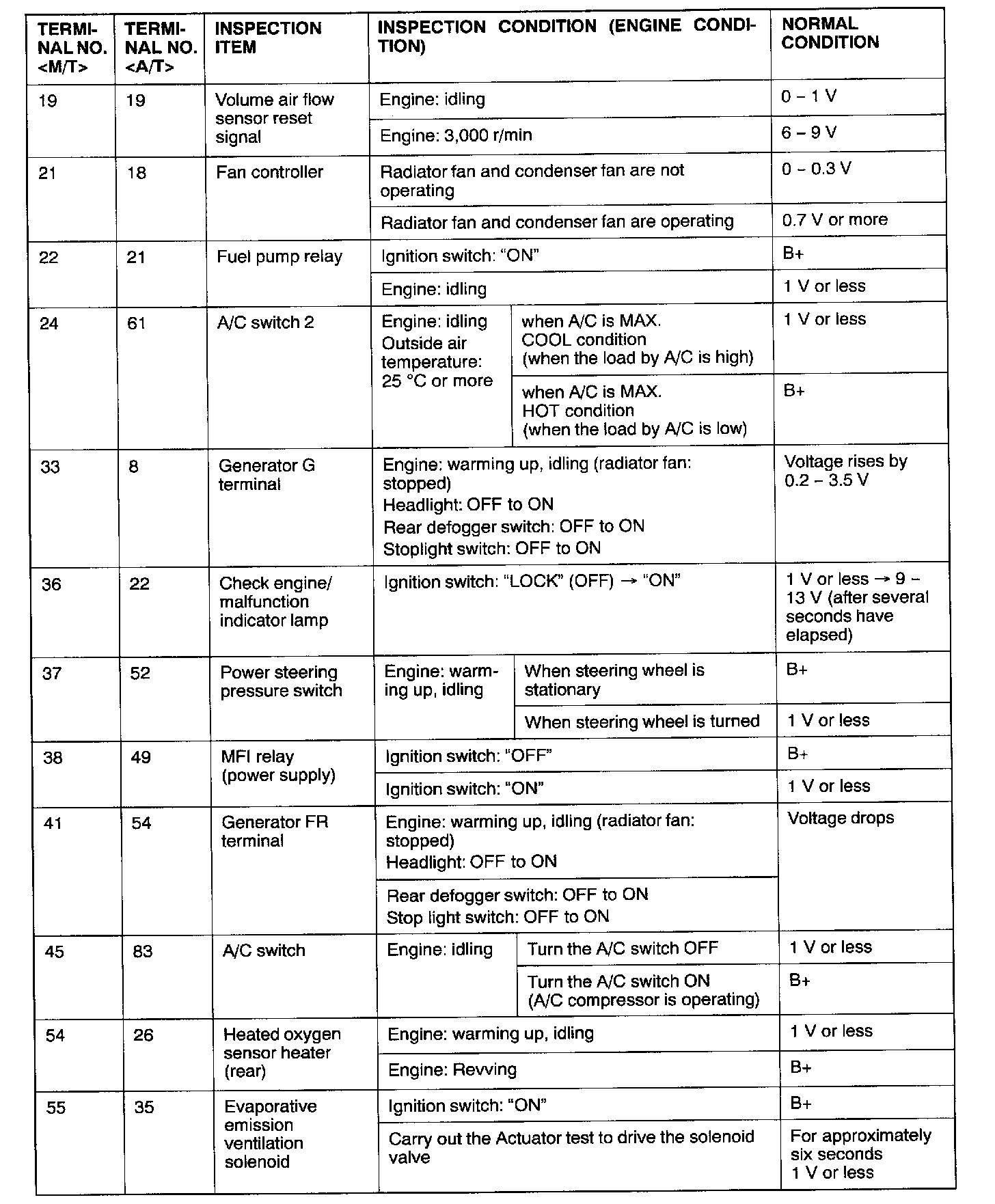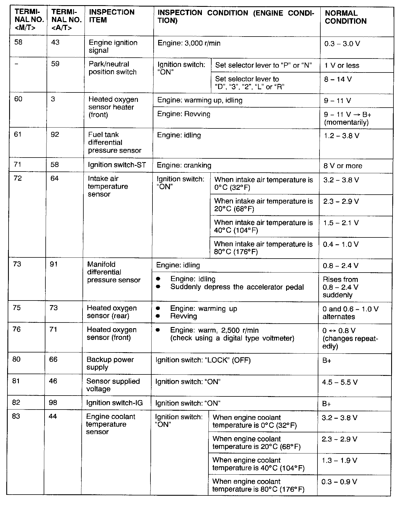 ECM <M/T> Or PCM <A/T> Connector Terminal Arrangement:
