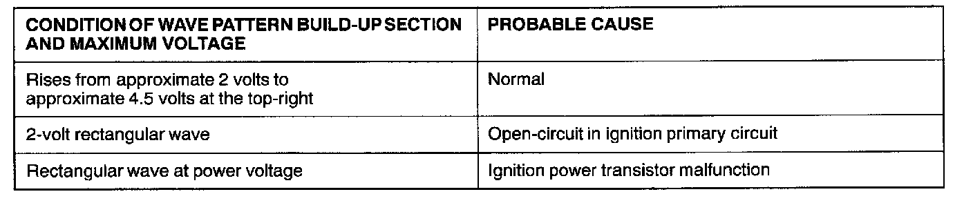 Point: Condition of wave pattern build-up section and maximum voltage (Refer to abnormal wave pattern examples 1 and 2.