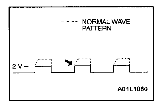 Connect the oscilloscope probe to ECM terminal 10 (for number 1 - number 4), terminal 23 (for number 2 - number 3) respectively.