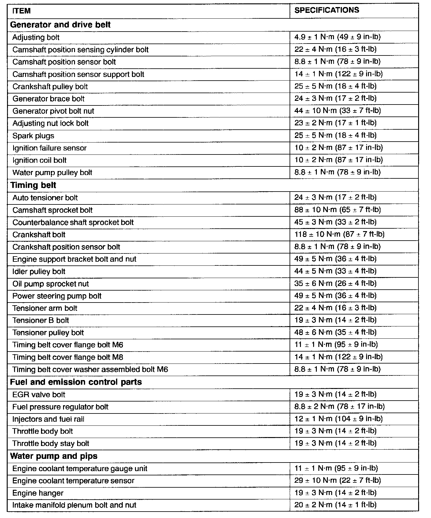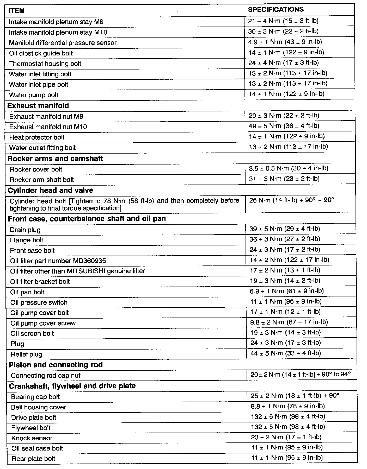 Torque Specifications