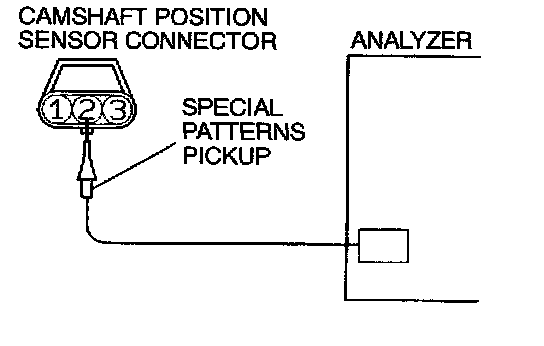 1. Connect the analyzer special patterns pickup to PCM terminal 56. (Check the camshaft position sensor signal wave pattern.)