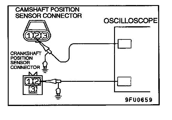 1. Connect the oscilloscope probe to ECM terminal 88. (Check the camshaft position sensor signal wave pattern.)