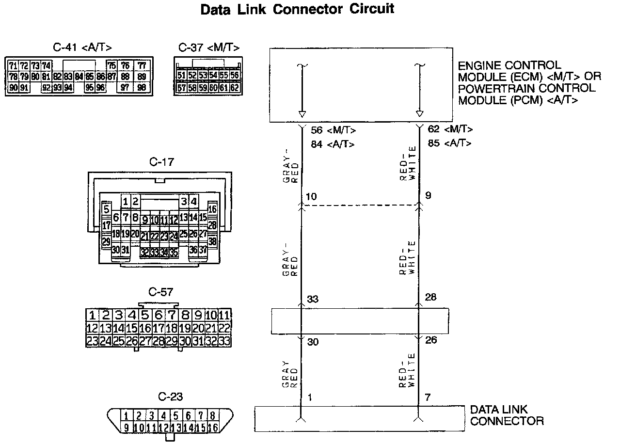 STEP 1. Check the harness wire between the data link connector C-23 and the ECM connector C-37