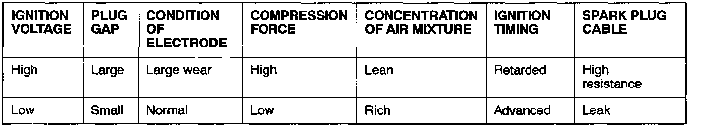 The height, length and slope of the spark line (refer to abnormal waveform examples 1, 2, 3 and 4) show the following trends.