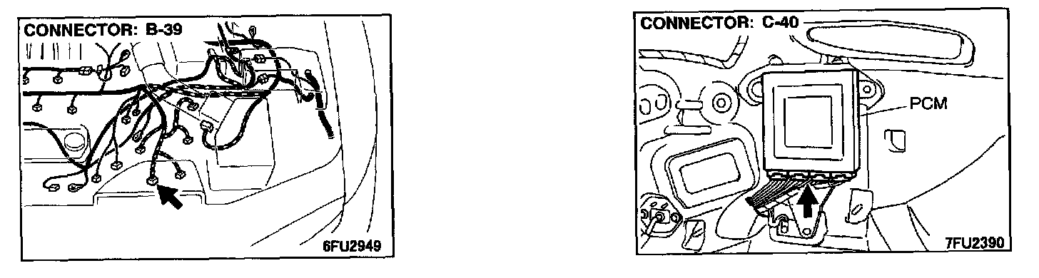 If harness connectors B-39 and C-40 are not damaged, replace the PCM.