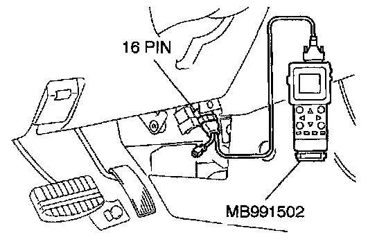 STEP 1. Using scan tool MB991502, read the diagnostic trouble code (DTC).