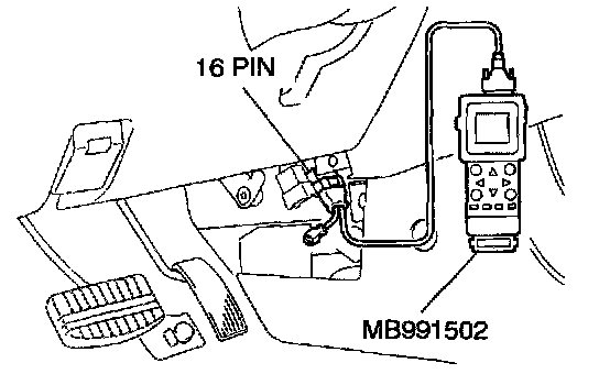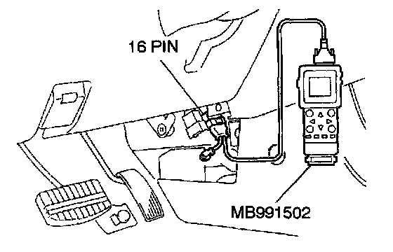 STEP 2. Using scan tool MB991502, read the diagnostic trouble code (DTC).