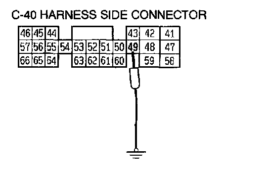 2. Disconnect the PCM connector C-40. Using a jumper wire, connect terminal 49 to ground and activate the MFI relay.