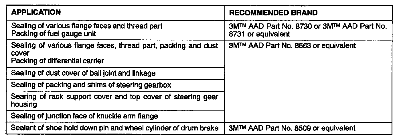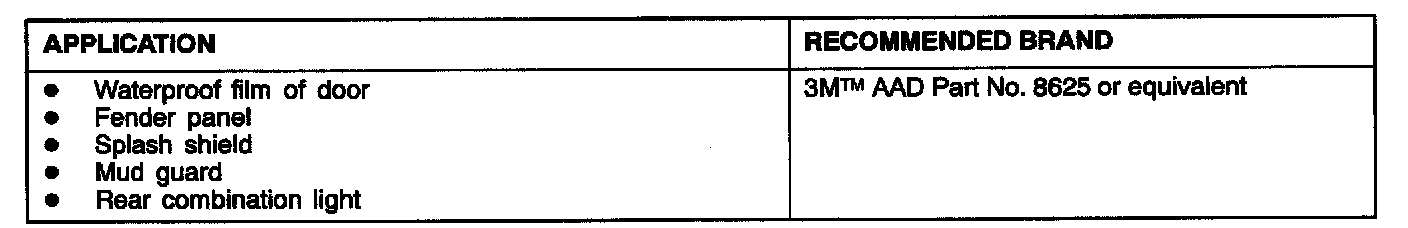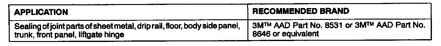 Main Sealant and Adhesive Table