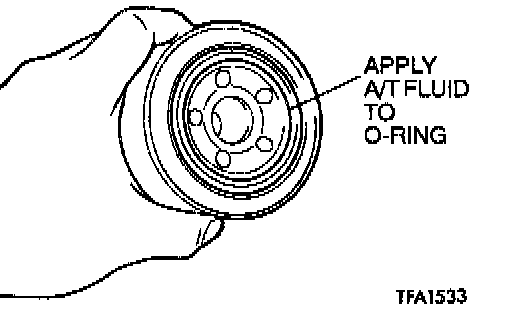 3. Apply a small amount of A/T fluid to the O-ring of the new oil filter.