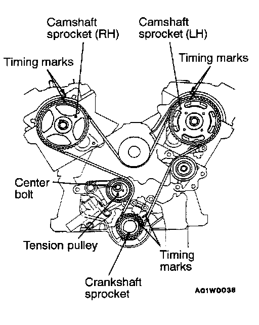 Incorrect removal or installation of the timing belt can result in damage to internal engine components.