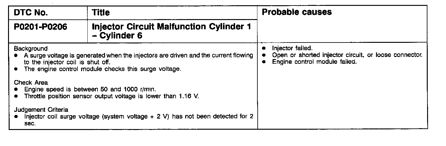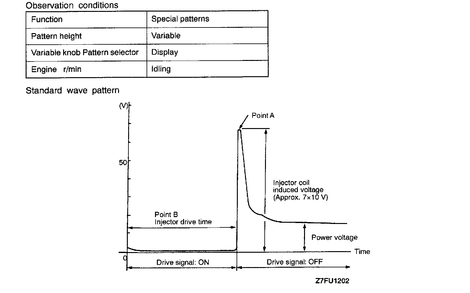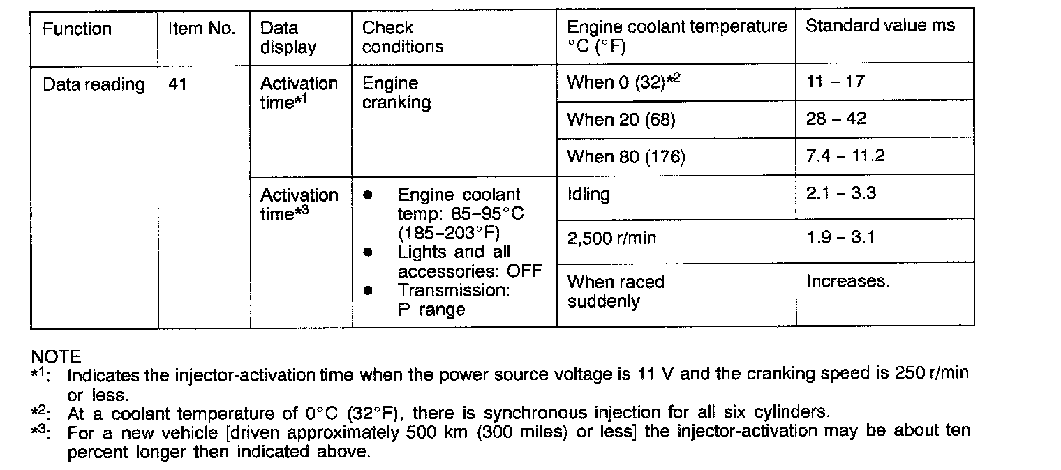 Hint 4: If the injector activation time is outside the standard value even though the results of the checking of the injector's harness and of the injector itself are normal, the cause is probably one of the following.