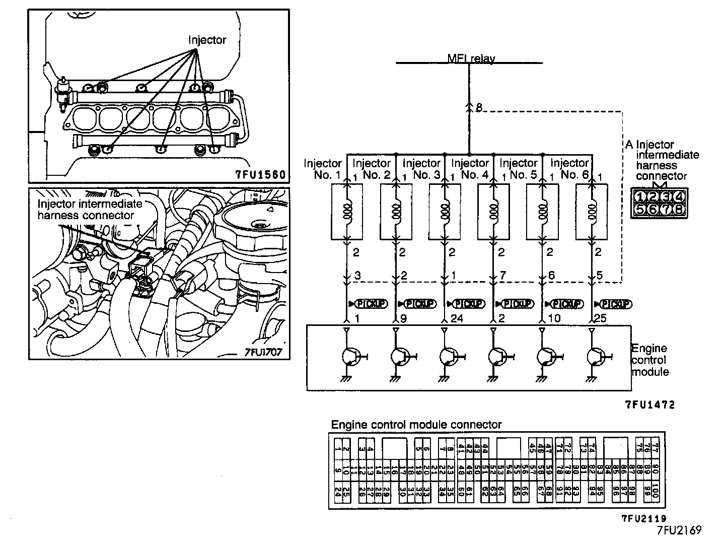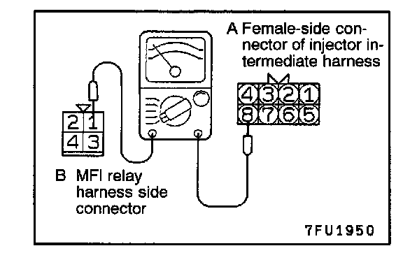 STEP 1. Check for continuity between the injectors and the MFI relay.