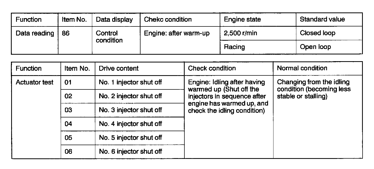 Hint 3: If there is a cylinder for which the idling condition does not change when, during idling, the fuel injection of the injectors is cut off in sequence, check that cylinder as describe.