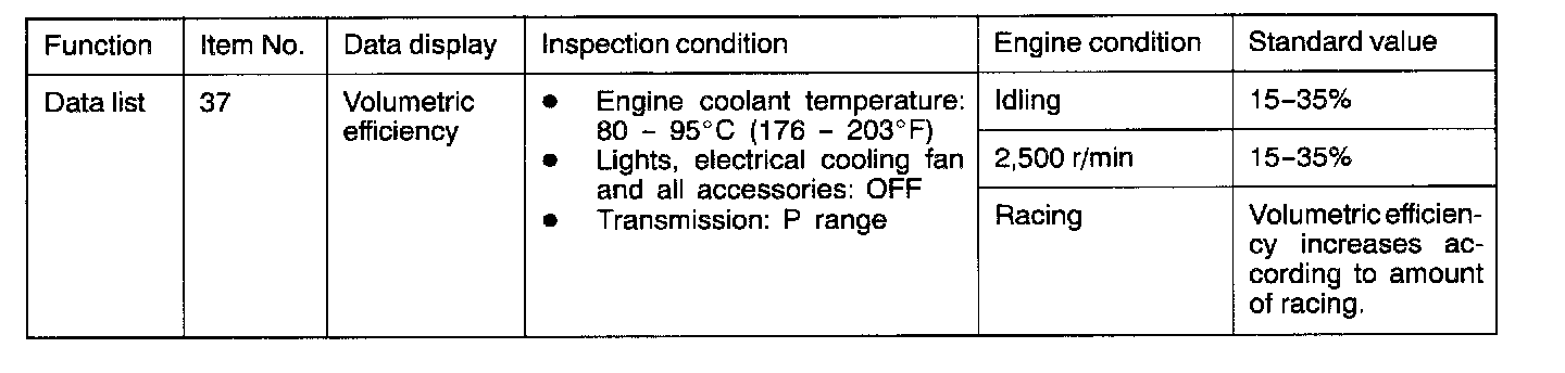 NOTE: When the vehicle is new [driven approximately 500 km (300 miles) or less], the volume air flow sensor output frequency may be approximately 10% higher than indicated above.