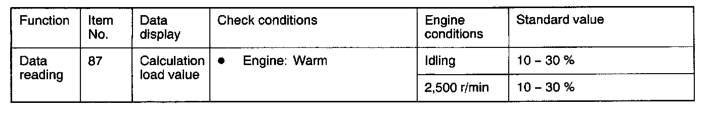 Hint 3: If idling is possible even though the volume air flow sensor output frequency is outside the standard value, the cause is usually a malfunction other than of the volume air flow sensor.