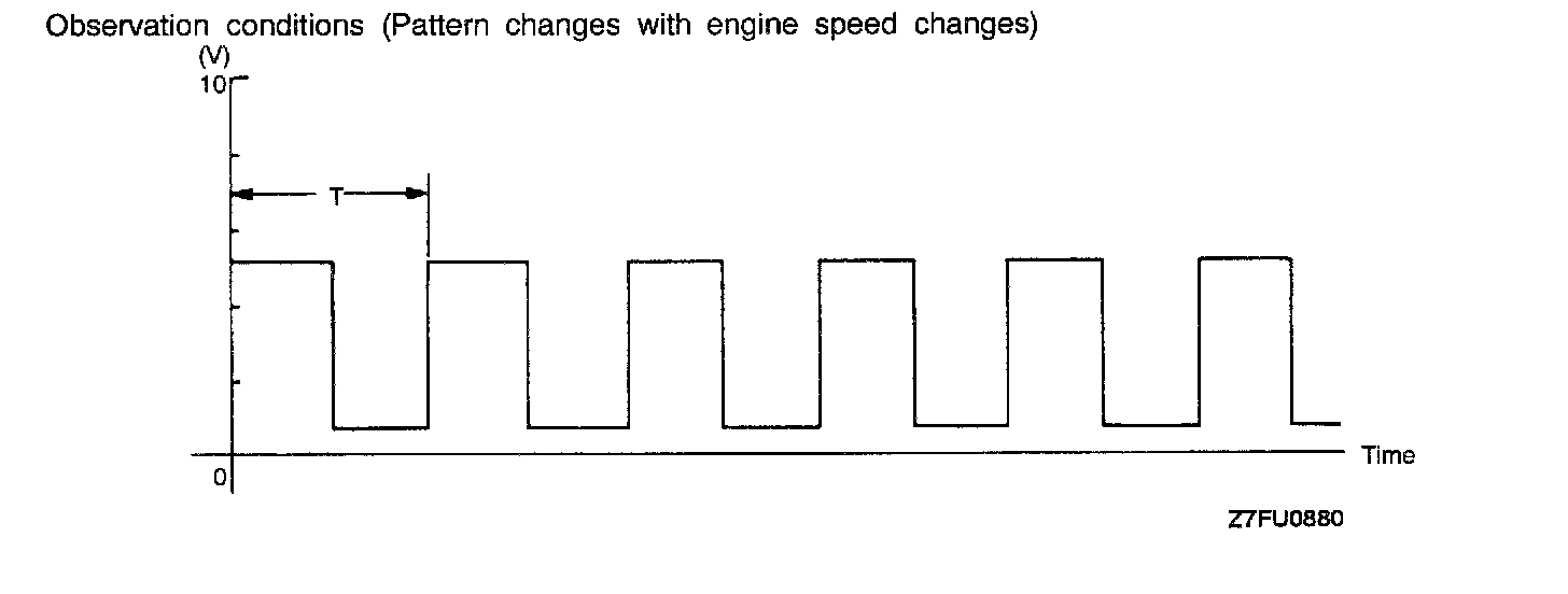 Check that cycle time T becomes shorter and the frequency increases when the engine speed is increased.