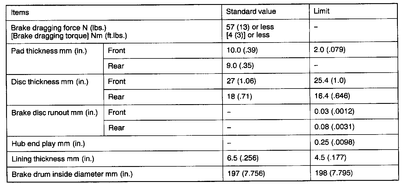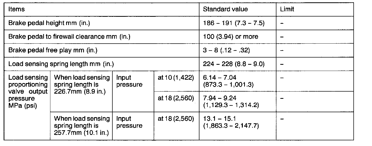 Specifications Charts