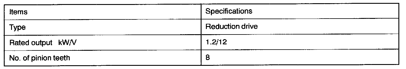 Starter Motor: Specifications
