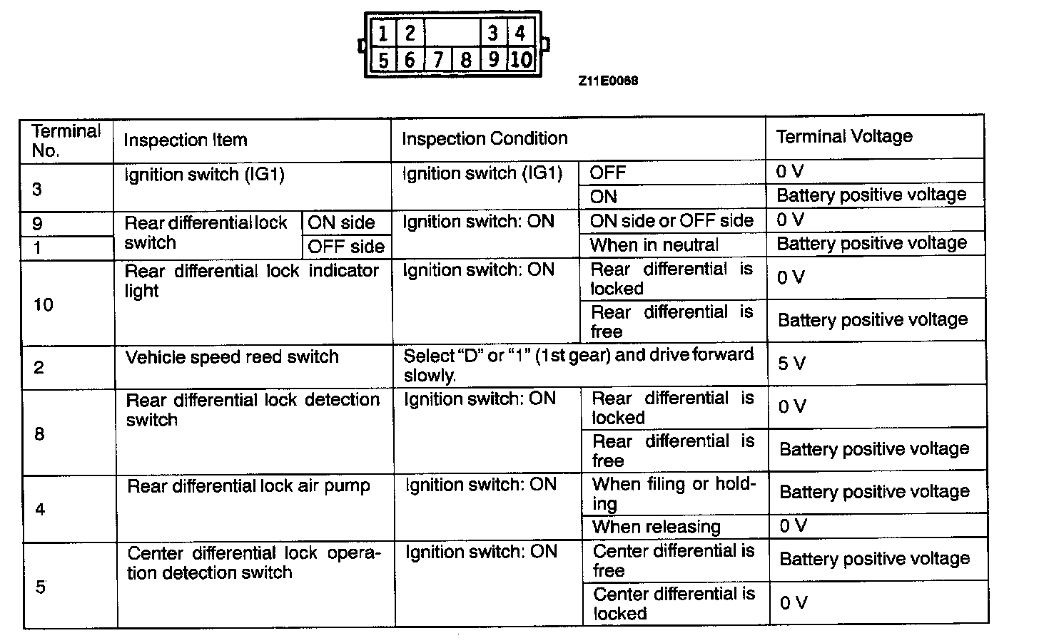 REAR DIFFERENTIAL LOCK SWITCH CONTINUITY