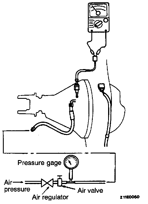 4. Adjust the compressed air pressure with the air regulator until the pressure gage shows a pressure of approximately 25 kPa (4 psi.).